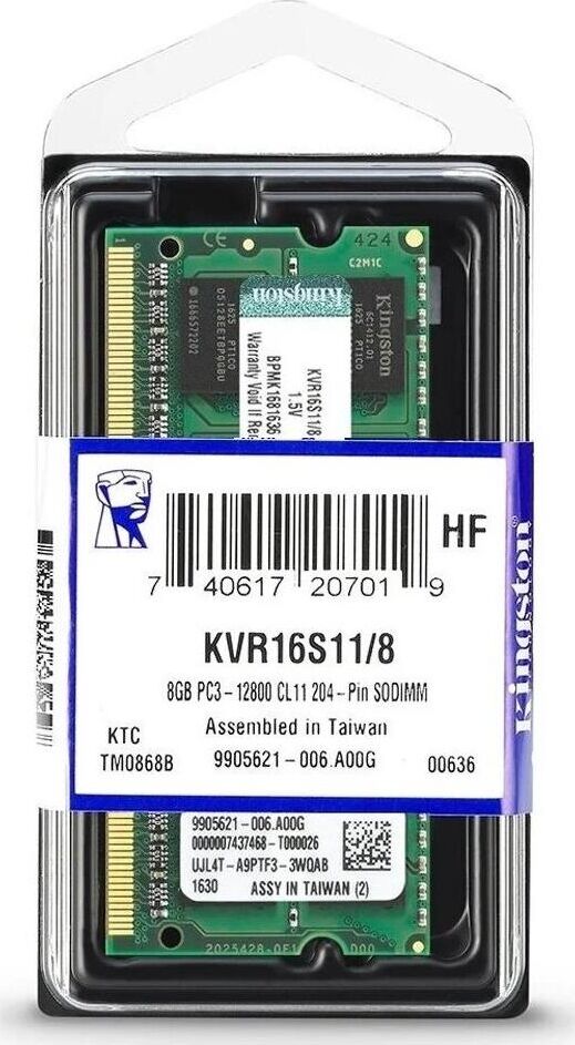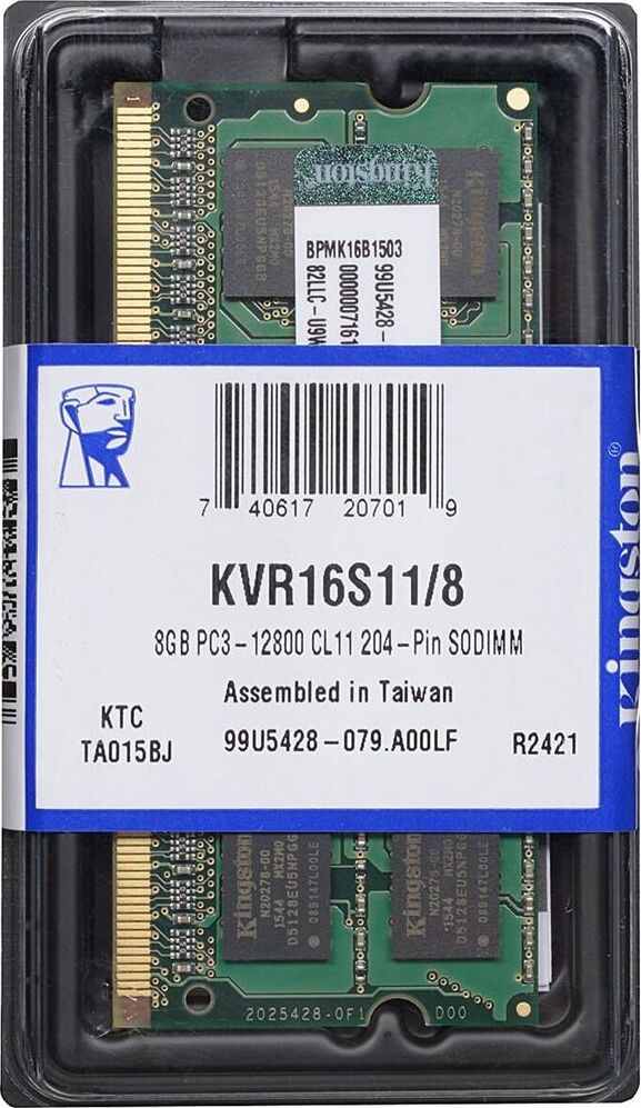Оперативная память KINGSTON Память DDR3 8GB 1600MHz KVR16S11/8WP RTL PC3-12800 CL11 SO-DIMM 204-pin 1.5В dual rank Ret