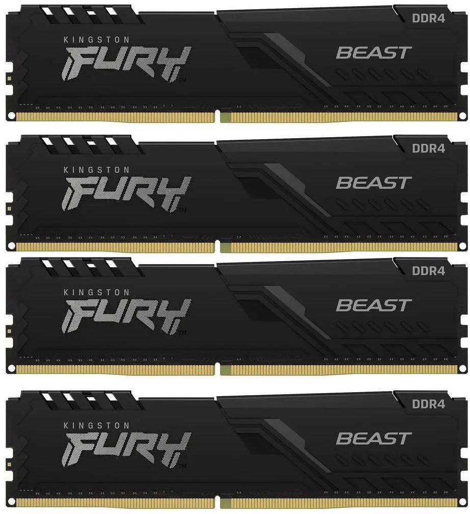 Оперативная память KINGSTON Память DDR4 4x32GB 3200MHz KF432C16BBK4/128 Fury Beast Black RTL Gaming PC4-25600 CL16 DIMM