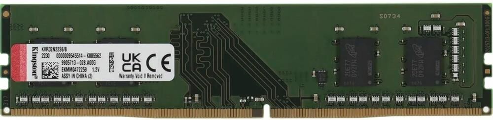 Оперативная память KINGSTON Память DDR4 8GB 3200MHz KVR32N22S6/8 VALUERAM RTL PC4-25600 CL22 DIMM 288-pin 1.2В single r