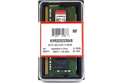 Оперативная память KINGSTON Память DDR4 SO-DIMM 8Gb (PC25600, 3200MHz, CL22, 1.2V) (KVR32S22S8/8)