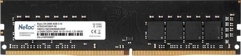 Оперативная память NETAC DIMM DDR4 8Gb PC21300 2666MHz CL19 (NTBSD4P26SP-08)