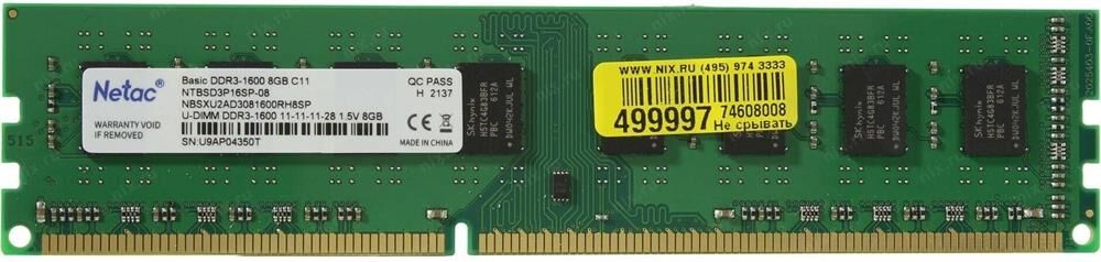Оперативная память NETAC Модуль памяти DIMM 4GB DDR3 NTBSD3P16SP-04