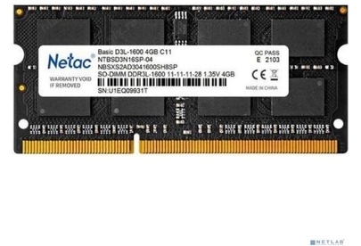[Модуль памяти] Память SO-DIMM DDR3L 4Gb PC12800 1600MHz CL11 Netac 1.35V (NTBSD3N16SP-04)