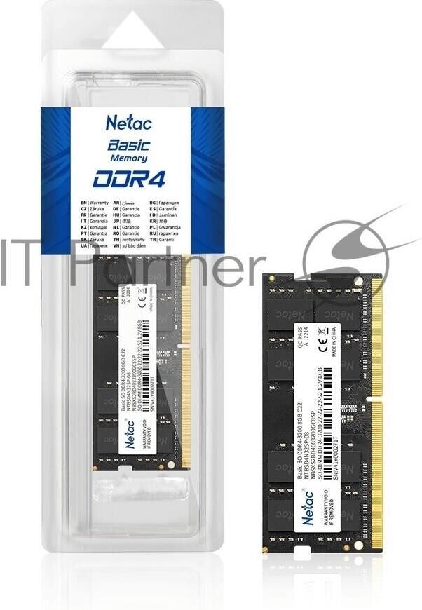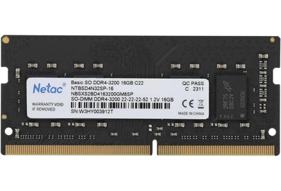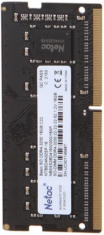Оперативная память NETAC Память DDR4 16GB 3200MHz NTBSD4N32SP-16 Basic RTL PC4-25600 CL22 260-pin 1.2В single rank Ret