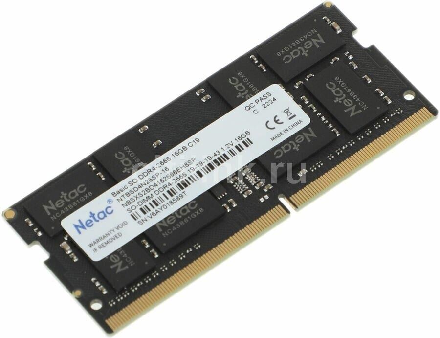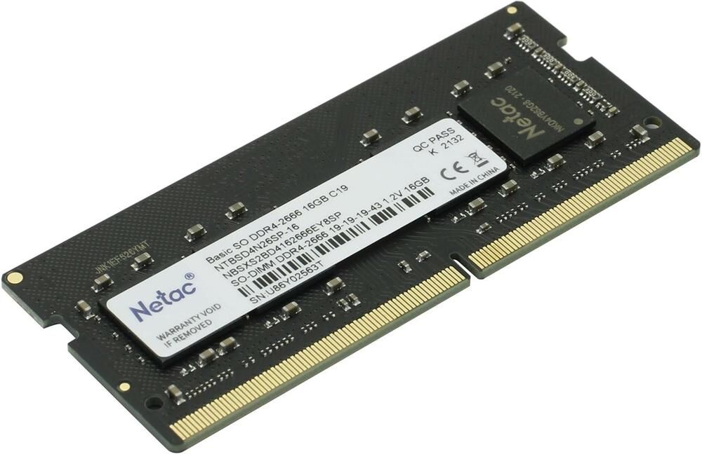 Оперативная память NETAC Память SO-DIMM DDR4 16Gb PC21300 2666MHz CL19 1.2V RTL (NTBSD4N26SP-16)