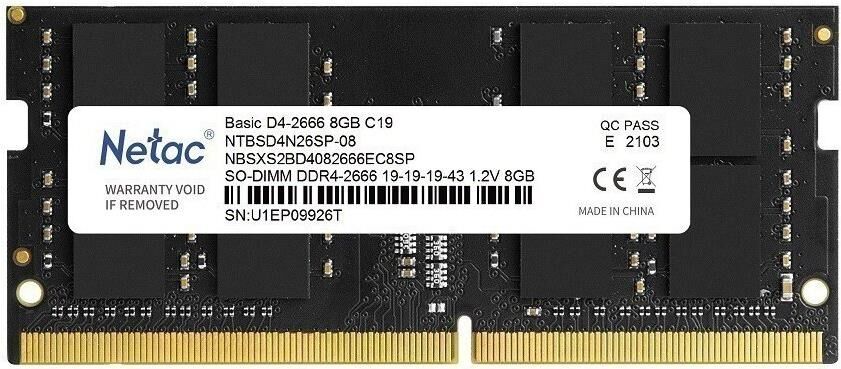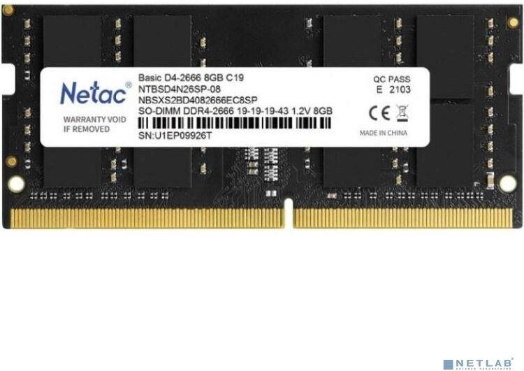 Оперативная память NETAC Память SO-DIMM DDR4 8Gb PC21300 2666MHz CL19 1.2V (NTBSD4N26SP-08)