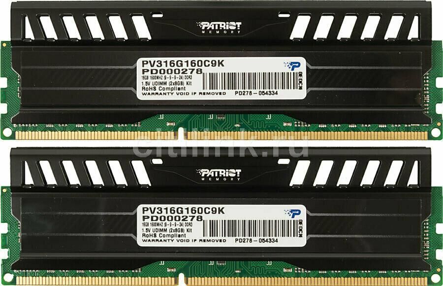 Оперативная память PATRIOT Модуль памяти DIMM DDR3-1600 16GB (8GBx2) PV316G160C9K