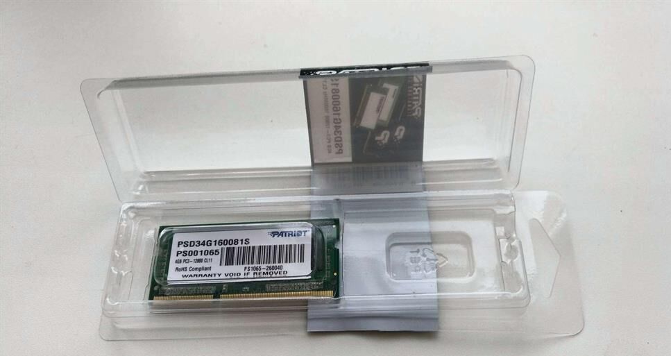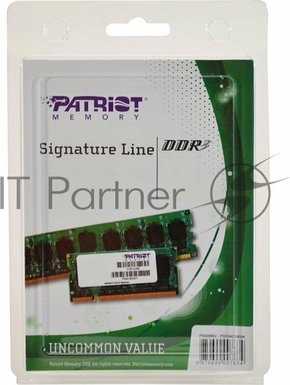 Оперативная память PATRIOT Модуль памяти SODIMM DDR3-1600 4GB PSD34G160081S