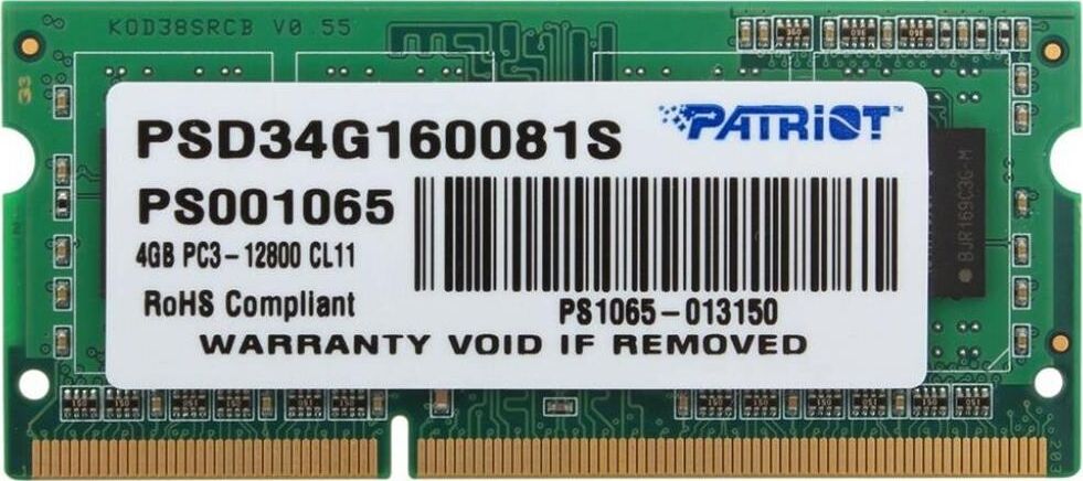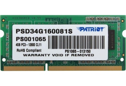 Оперативная память PATRIOT Память DDR3 4GB 1600MHz PSD34G160081S RTL PC3-12800 CL11 SO-DIMM 204-pin 1.5В single rank Re