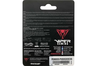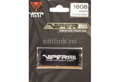 Оперативная память PATRIOT Память DDR4 16GB 2666MHz PVS416G266C8S Viper Steel RTL PC4-21300 CL18 260-pin 1.2В single ra