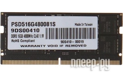 Оперативная память PATRIOT Память DDR5 16GB 4800MHz PSD516G480081S RTL PC5-38400 CL40 SO-DIMM 262-pin 1.1В dual rank Re