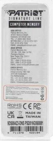 Оперативная память PATRIOT Память DDR5 16GB 5600MHz PSD516G560081 Signature RTL PC5-44800 CL46 DIMM 288-pin 1.1В single