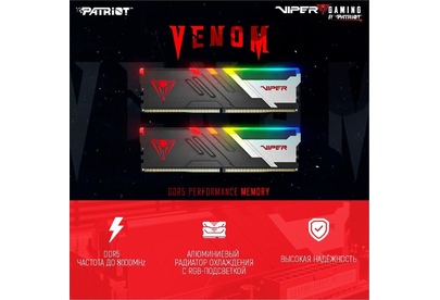 Оперативная память PATRIOT Память DDR5 2x32GB 5200MHz PVVR564G520C40K Viper Venom RGB RTL Gaming PC5-41600 CL40 DIMM 28