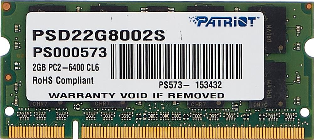 Оперативная память PATRIOT PSD22G8002S DDR2 - 2ГБ 800, SO-DIMM, Ret