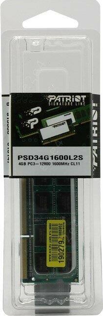 Оперативная память PATRIOT PSD34G1600L2S DDR3L - 4ГБ 1600, SO-DIMM, Ret