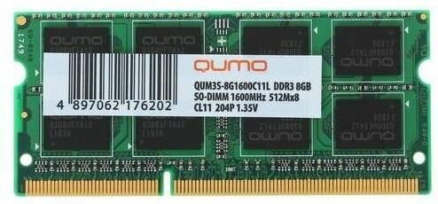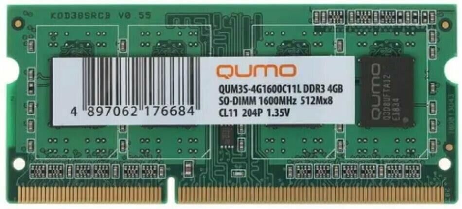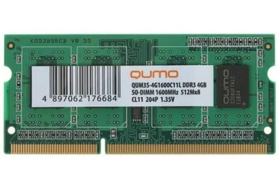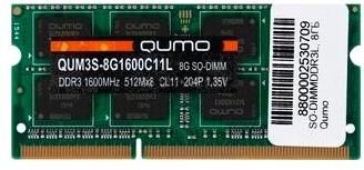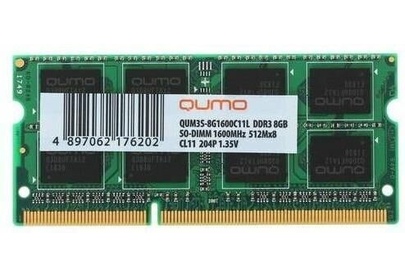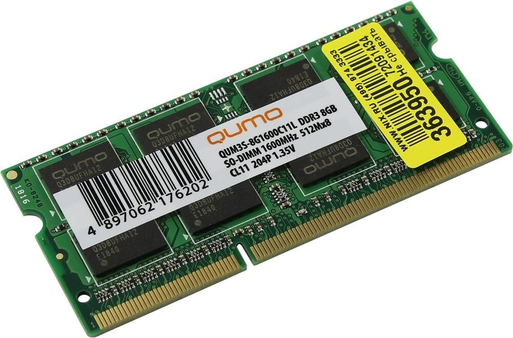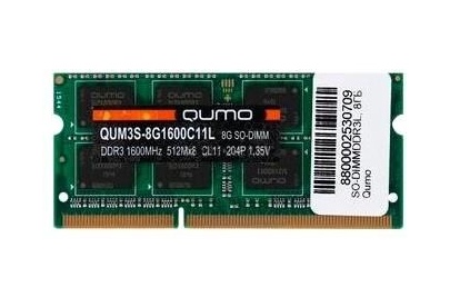 Оперативная память QUMO DDR3 SODIMM 8GB QUM3S-8G1600C11L PC3-12800, 1600MHz, 1.35V OEM/RTL