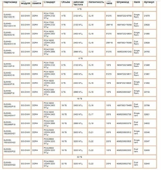 Оперативная память для ноутбуков