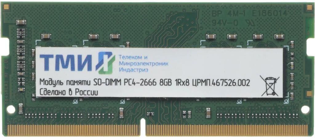 Оперативная память ТМИ Память DDR4 8Gb 2666MHz ЦРМП.467526.002 OEM PC4-21300 CL20 SO-DIMM 260-pin 1.2В single rank OEM