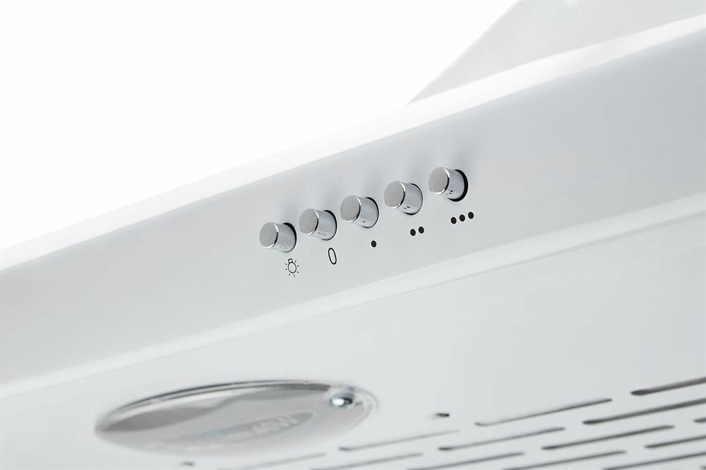 Цвет корпуса - белый,Мощность - 105Вт,Размеры вытяжки (ШхГхВ) - 498х470х100,Максимальный уровень шума (dB) - 52,Подсветка - 1 x E14 25W,Диаметр выхода - 120мм,Управление - кнопочное ,Тип фильтра - фильтр угольный №1