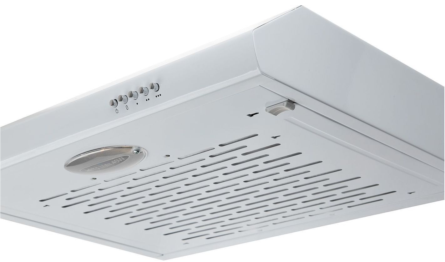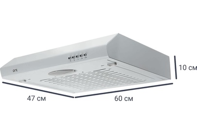 Цвет корпуса - белый,Мощность - 105Вт,Размеры вытяжки (ШхГхВ) - 598х470х100,Максимальный уровень шума (dB) - 52,Подсветка - 1 x E14 25W,Диаметр выхода - 120мм,Управление - кнопочное ,Тип фильтра - фильтр угольный №1