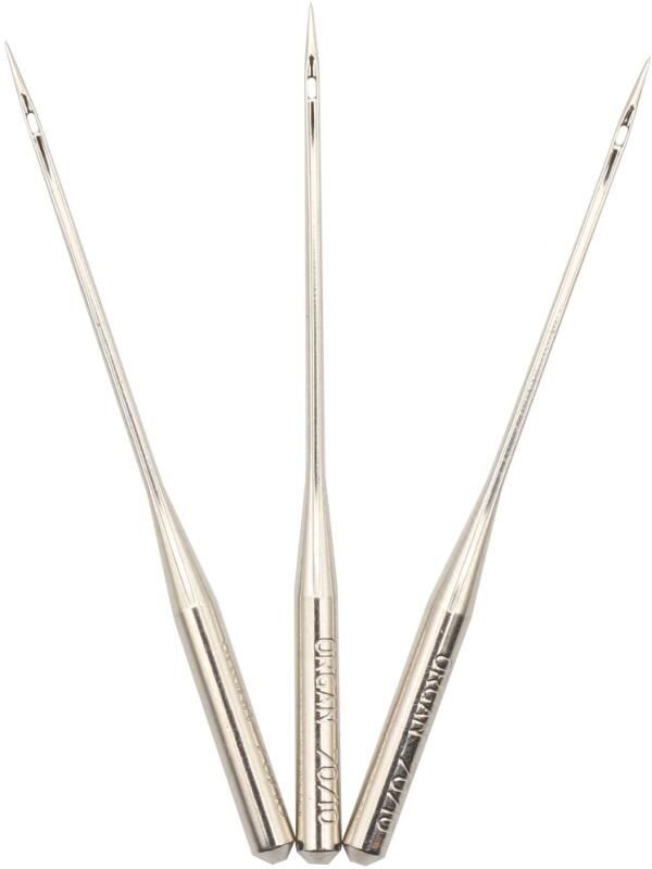 Кончик иглы среднезакругленный. Применяются для шитья тонких трикотажных и вязаных изделий, одинарных (односторонних) джерси, корсетной ткани и т.д.