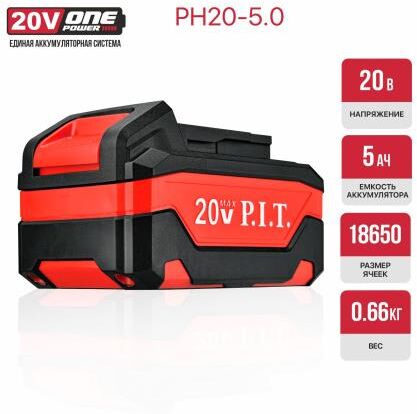 P.I.T. Аккумулятор OnePower PH20-5.0 (20В, 5Ач, Li-Ion, индикация заряда, плата, 5контактов)