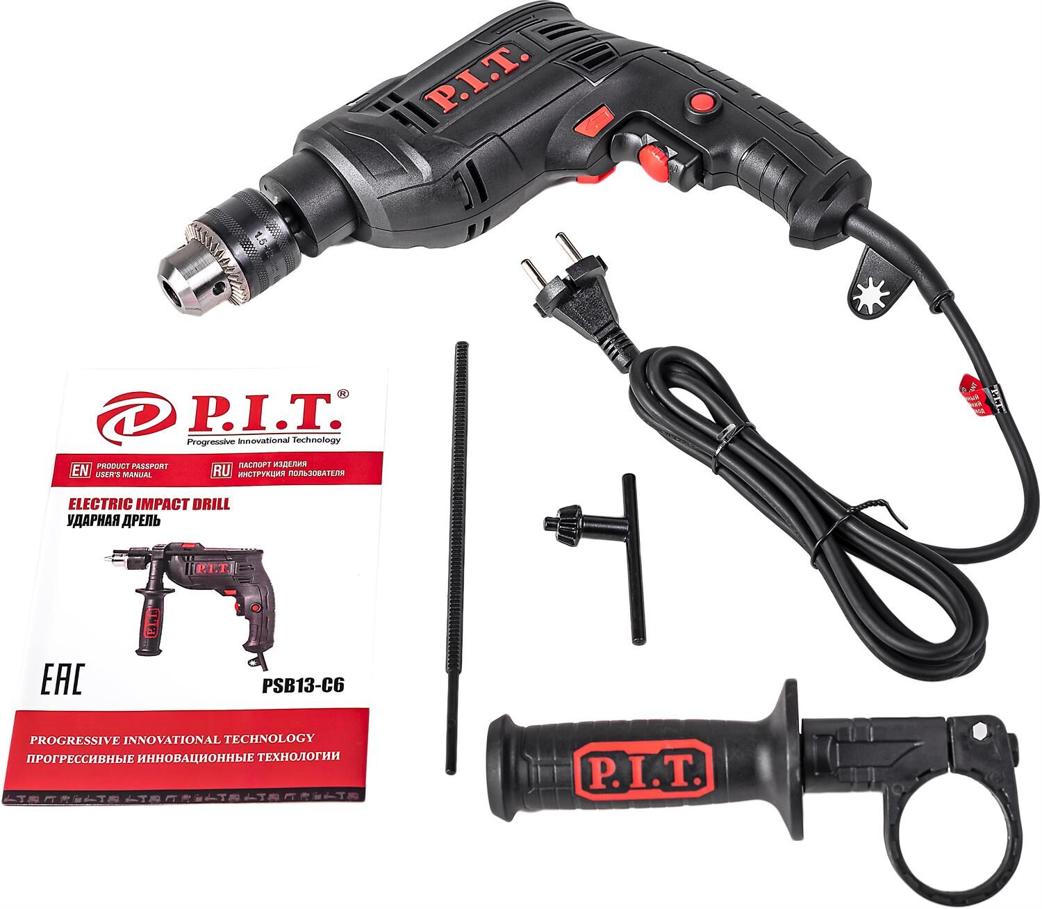 P.I.T. Дрель ударная электрич. PSB13-C6 (650Вт, ключ. патрон 13мм, 0-3000 об/мин, 0-48000 уд/мин)