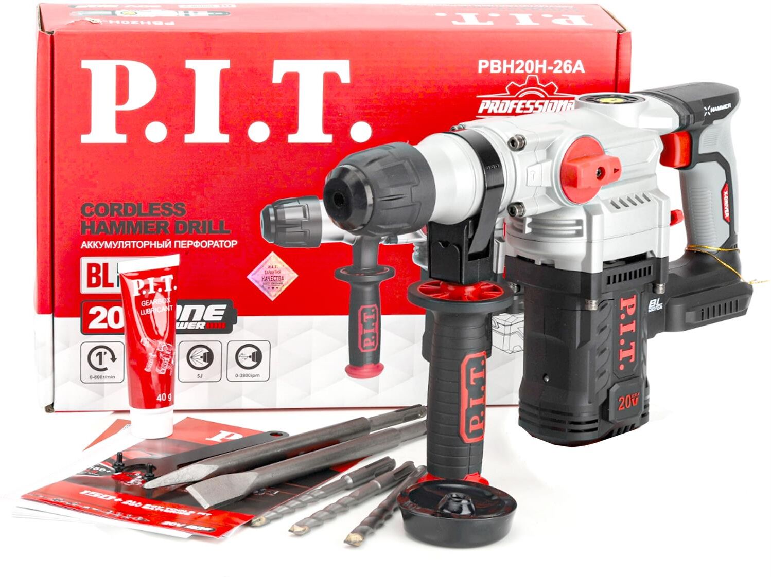 P.I.T. Перфоратор SDS-Plus аккум. бесщеточный PBH20H-26A SOLO (верт, 20В, 5,0Дж, 3реж, Ø26мм, кор.)