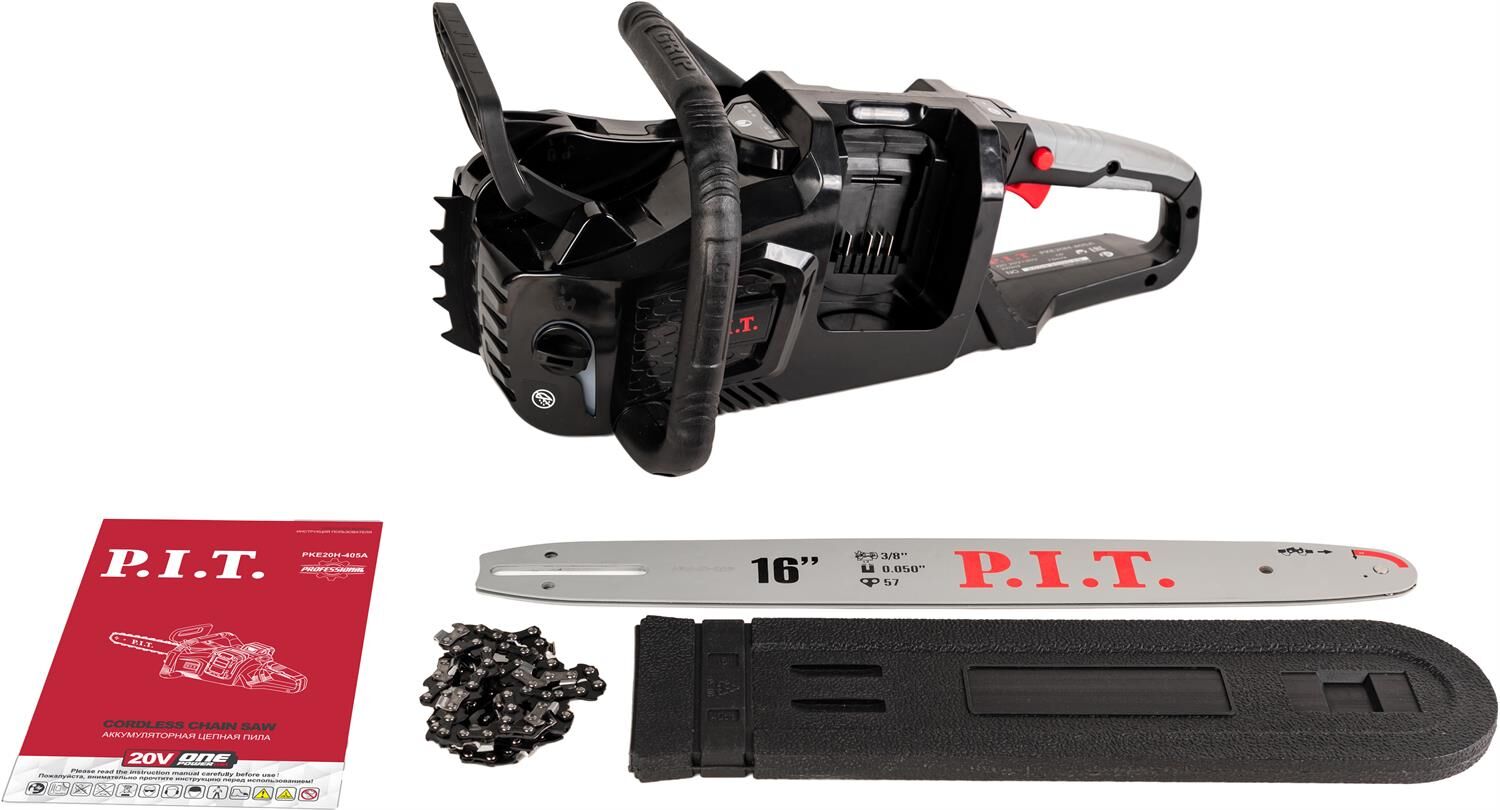 P.I.T. Пила цепная аккум. бесщёточная PKE20H-405A SOLO (40В(20В+20В), 16"/405 мм, скор. цепи 20м/с)