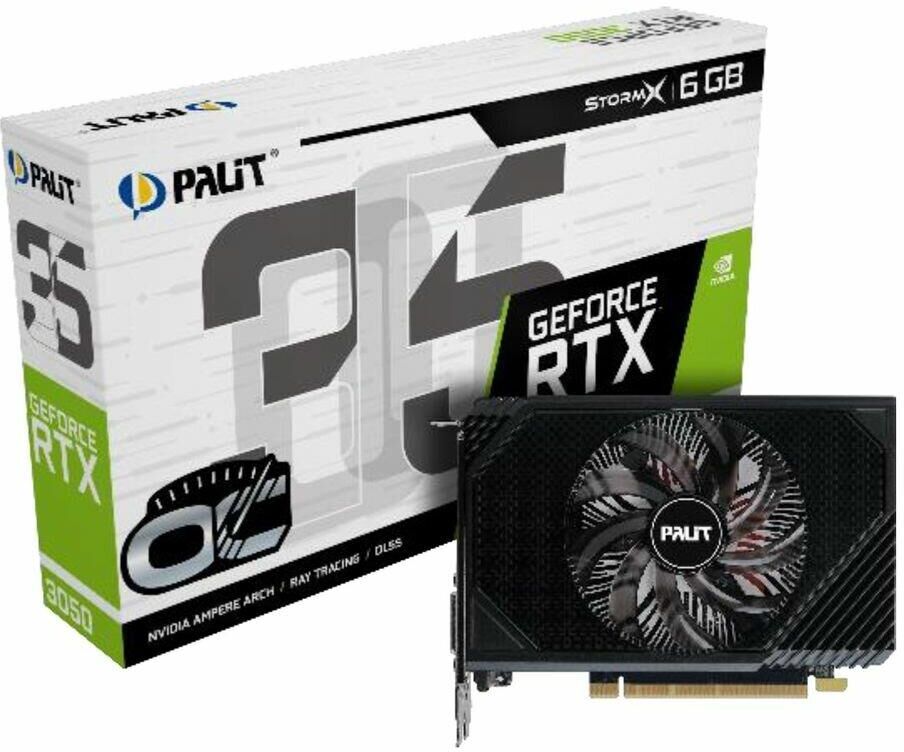PALIT Видеокарта 4.0 RTX3050 STORMX OC NVIDIA GeForce RTX 3050 6Gb 96bit GDDR6 1042/14000 DVIx1 HDMI