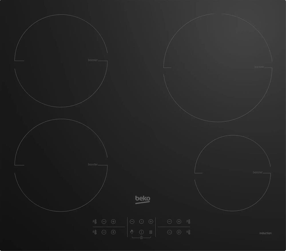 Индукционная варочная поверхность; 4 зоны нагрева; 60см; функция быстрого нагрева Booster; 9-ступенчатая регулировка мощности; без рамки; Управление: независимое управление для каждой зоны; таймер; функция блокировки управления; индикация остаточного тепла; Цвет: Черный