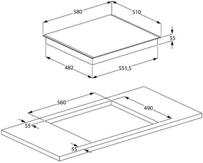 (ШхГ) 58х51 см. Индукционная варочная панель. Материал панели стеклокерамика. Общее количество конфорок 4. Установка независимая. Функции таймер, Booster. Переключатели сенсорные. Безопасность: защитное отключение конфорок, кнопка блокировки панели, индикатор остаточного тепла.