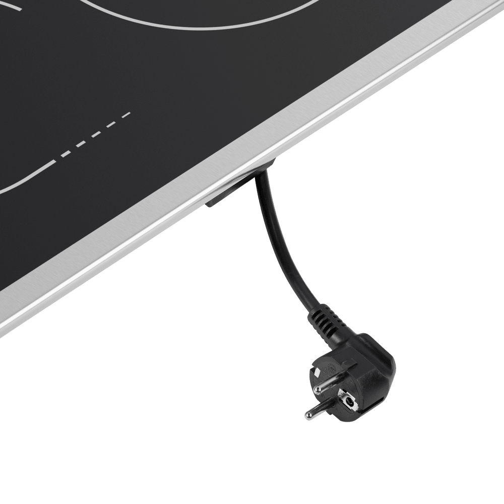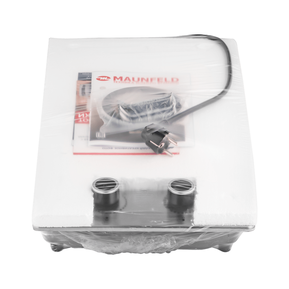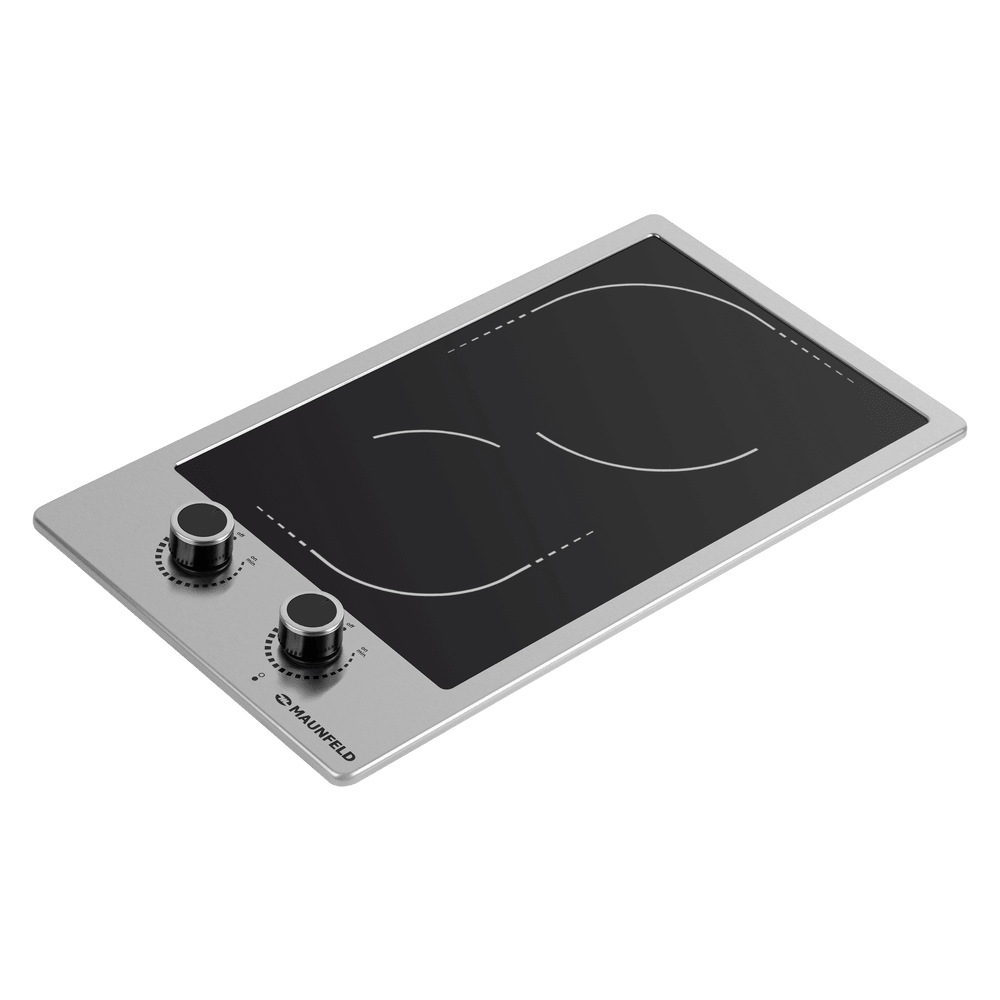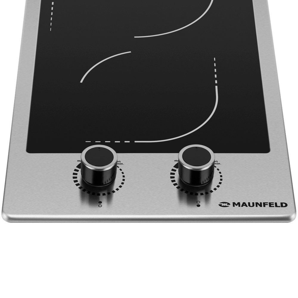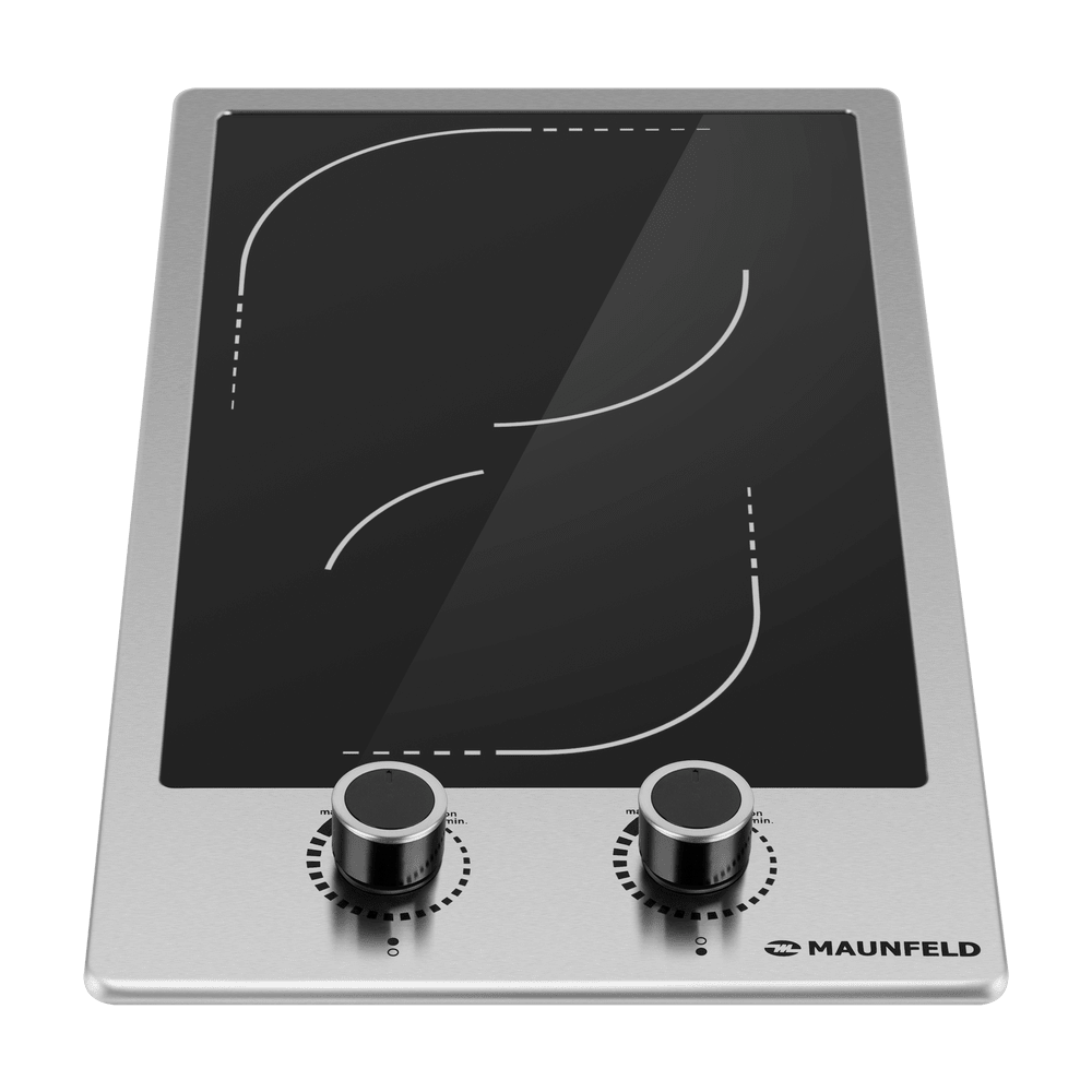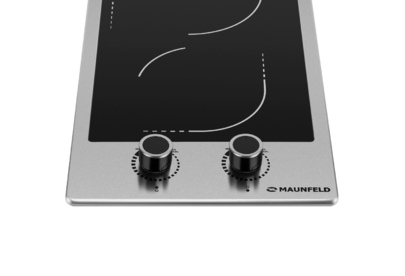 Электрическая варочная панель Maunfeld EEHE.32VCSB — компактная модель, выполненная в необычном современном дизайне. Поверхность плиты изготовлена из черной стеклокерамики, прочного теплопроводного материала, который прост в уходе и энергоэффективен. Зоны нагрева схематично очерчены двумя тонкими белыми линиями. Устройство обрамлено металлической рамкой цвета нержавеющей стали. Благодаря этому уменьшаются теплопотери. Управление полностью механическое и осуществляется с помощью двух цельнометаллических поворотных регуляторов черного цвета. За счет этого создается контраст, который придает изюминку внешнему виду модели. Электрическая варочная панель Маунфилд EEHE.32VCSB имеет конструкцию по типу «Домино». Это позволяет устанавливать ее рядом с другими устройствами такого же размера и комбинировать панели с разными функциями по своим личным предпочтениям. Также компактные размеры позволяют разместить эту модель даже в самых небольших кухнях, например, в квартирах-студиях. Устройство оснащено двумя кон