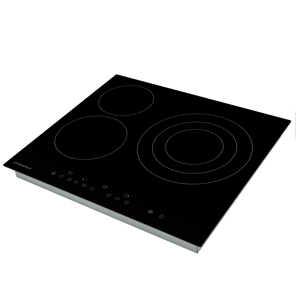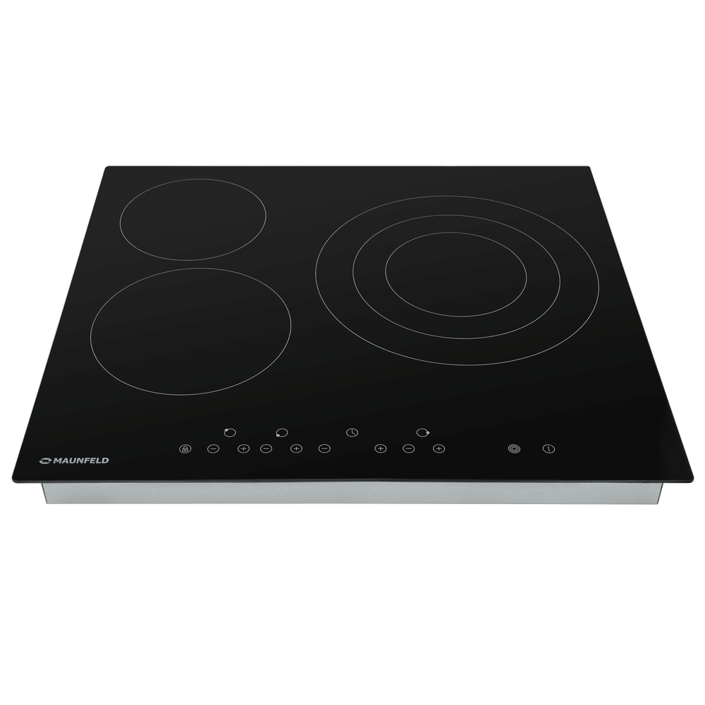 Электрическая варочная панель Maunfeld EVCE.593.T-BK выполнена в черном цвете из стеклокерамики. Такой материал устойчив к температурному воздействию. Она имеет 3 зоны нагрева для удобства вашего пользования. Модель будет удобна для встраивания, ее размеры составляют: высота — 5.2 см, ширина — 59 см, глубина — 52 см. Сенсорный слайдер позволит подобрать 1 из 9 мощностей нагрева. Такой тип управления не составит никакого труда для ее освоения. Функция автоматического отключения присутствует в данной электрической варочной панели Маунфелд EVCE.593.T-BK и является частью системы безопасности. Она прекращает работу прибора спустя определенный период времени, зависящий от мощности или, иными словами, интенсивности нагрева. При помощи индикаторов остаточного тепла вы сможете определить состояние конфорки после завершения приготовления блюда, насколько сильно нагрета та или иная зона. Вы можете не беспокоиться о том, что случайно обожжетесь. Встроенная опция блокировки от детей обеспечивает над