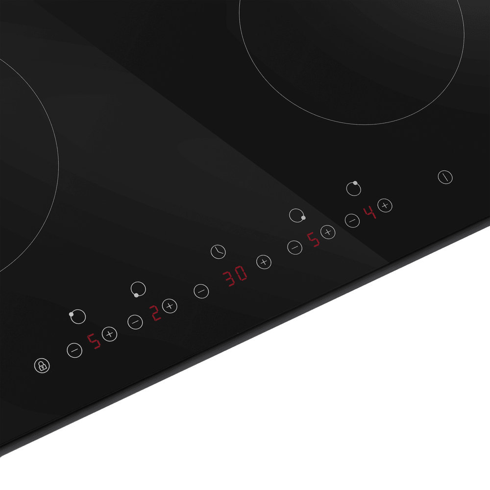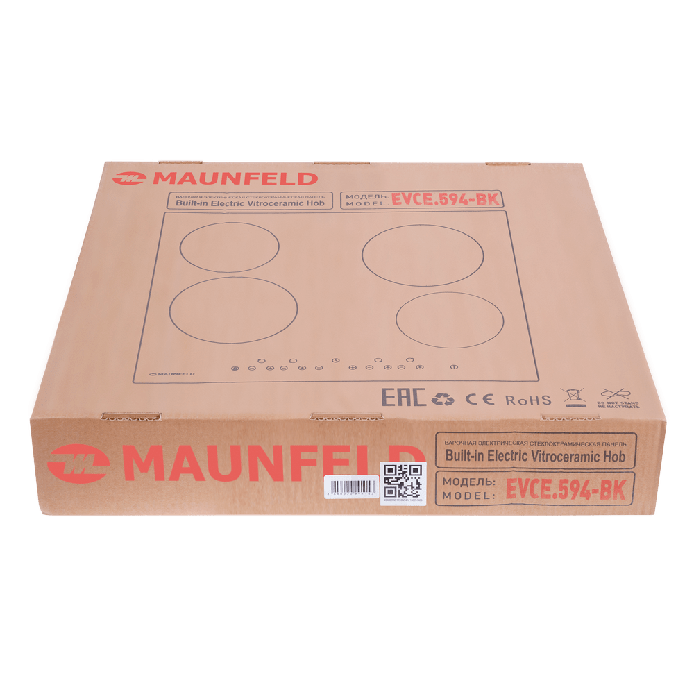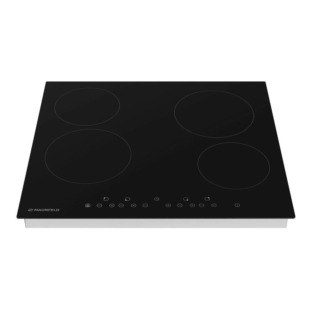 Электрическая варочная панель Maunfeld EVCE.594-BK представлена в черном цвете. Такой дизайн модели подойдет к любой кухне. С ее помощью вы можете не тратить много сил на приготовление пищи, ведь поверхность включает в себя большой функционал. Ее габариты достаточно удобны: 5.2×59×52 см. Удобное расположение 4 конфорок, которые предполагают возможность использования сковород и кастрюль, диаметр дна которых от 12 см. Мощность двух конфорок — 1.2 кВт, двух других составляет 1.8 кВт. Продлению сроку эксплуатации служит автоматическое отключение, которое сработает, если в процессе работы конфорка нагревается до критических температур. С такой функцией Вы никогда не столкнетесь с перегревом. Также сюда встроен таймер. С ним Вы не забудете вовремя выключить блюдо на конфорке, устройство сделает за Вас это самостоятельно. Блокировка от детей обеспечивает безопасную эксплуатацию. Эта опция позволяет зафиксировать выбранные настройки до окончания рабочего цикла. Она активируется и деактивируется последова
