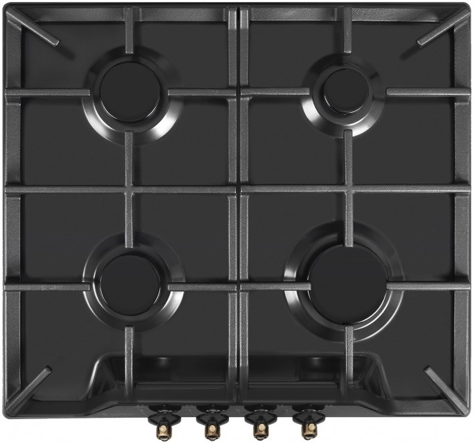 Газовая варочная панель Гефест с покрытой эмалью черного цвета с рисунком "ретро" поверхностью, ширина 59 см. Несмотря на скромные размеры, варочная поверхность укомплектована системой газ-контроля, перекрывающего подачу газа при случайном угасании пламени. А чтобы не загасить газовую горелку, предусмотрено фиксированное положение переключателя для экономного горения. Электророзжиг встроен в поворотные ручки и включается автоматически. Две средние конфорки, малая и большого диаметра обеспечивают возможность использовать разную посуду для приготовления, а две составные чугунные решетки выдерживают тяжесть большой кастрюли без проблем. Эксплуатация не вызовет затруднений, управление - простое.