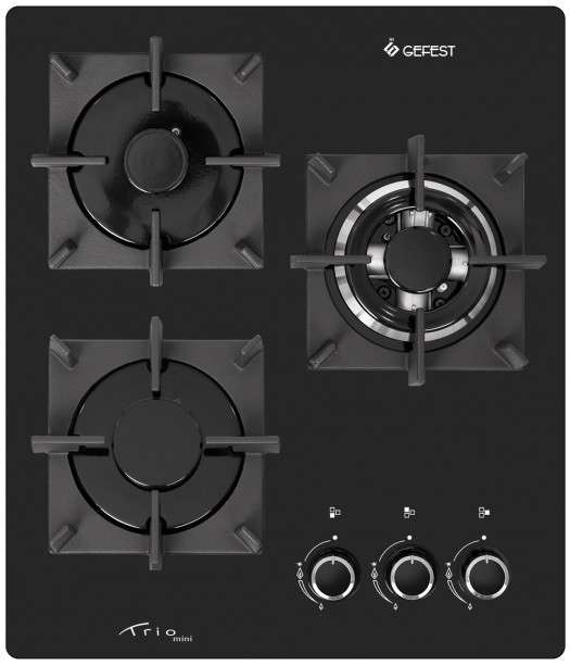 О модели GEFEST ПВГ 2100-01 К33Такому Trio найдется место на Вашей кухне! Газовая варочная панель, поверхность - стеклянная. Небольшая по ширине, всего 45 см, модель - прекрасная альтернатива так называемым панелям "домино" шириной в 30 см. Три конфорки идеально совместимы по мощности:слева расположены небольшая, экономичного горения и еще одна, средней мощности, а справа размещена очень мощная, быстрого разогрева, двухзонная горелка. Раздельные чугунные решетки отлично смотрятся на стекле, легко чистятся, удобны в эксплуатации и не боятся веса тяжелой посуды. Удачно подобрано размещение конфорок, они не будут нагревать декорированные ручки управления. Поворотным переключателем можно не только зажечь и отрегулировать мощность горения, есть автоматический режим "малого пламени" - когда конфорка выдает минимально возможный нагрев. На тот случай, если вдруг пламя угаснет, предусмотрено перекрытие подачи газа к любой из конфорок (система газ-контроля).Ключевые