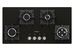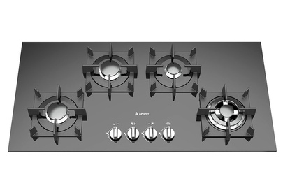 Газовая варочная поверхность со стеклянной основой черного цвета. Для комфортного приготовления ширина рабочего стола увеличена до 85 см, конфорки оснащены газ-контролем, электроподжиг встроен в поворотные ручки. Расположены горелки полукругом, с центральным расположением элементов управления.