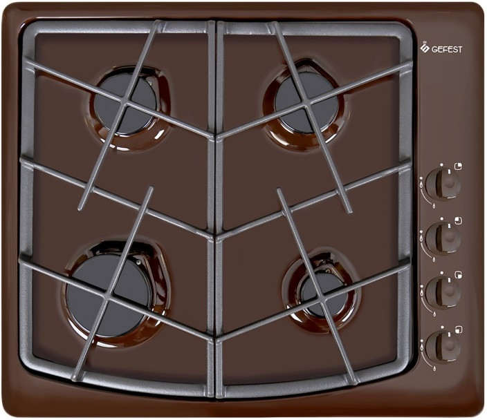 Газовая варочная панель Гефест выполнена в коричневом цвете и покрыта прочной эмалью, ширина 59 см. Панель укомплектована системой газ-контроля, перекрывающего подачу газа при случайном угасании пламени. А чтобы не загасить газовую горелку, предусмотрено фиксированное положение переключателя для экономного горения. Электророзжиг встроен в поворотные ручки и включается автоматически. Две средние конфорки дополнены горелками малого и большого диаметра, обеспечивают возможность использовать разную посуду для приготовления, а составные чугунные решетки выдерживают тяжесть большой кастрюли без проблем. Эксплуатация не вызовет затруднений, управление - простое.