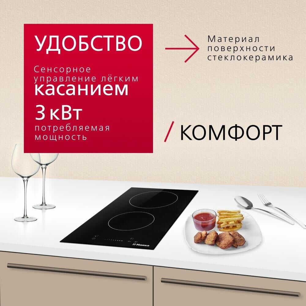 Панель варочная электрическая HANSA Электрическая варочная поверхность BHC331047, конфорок: 2 шт., стеклокерамика, независимая, че