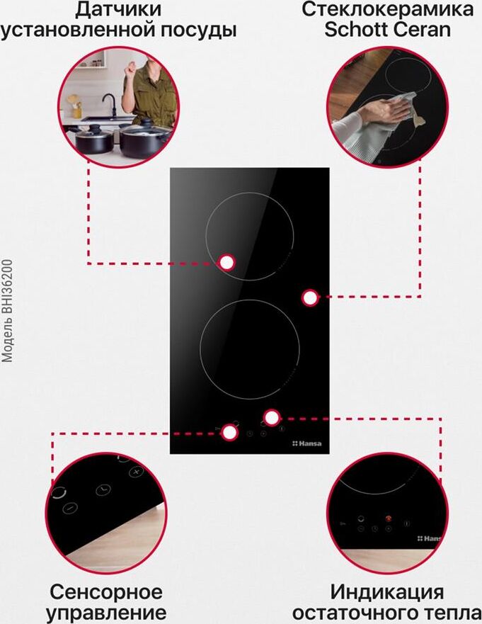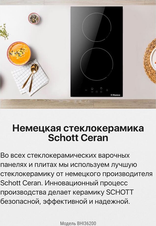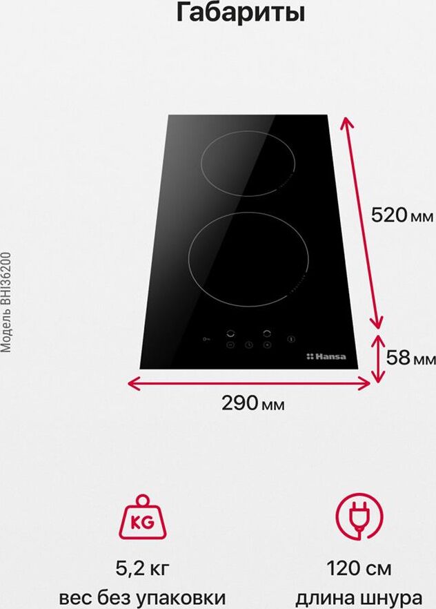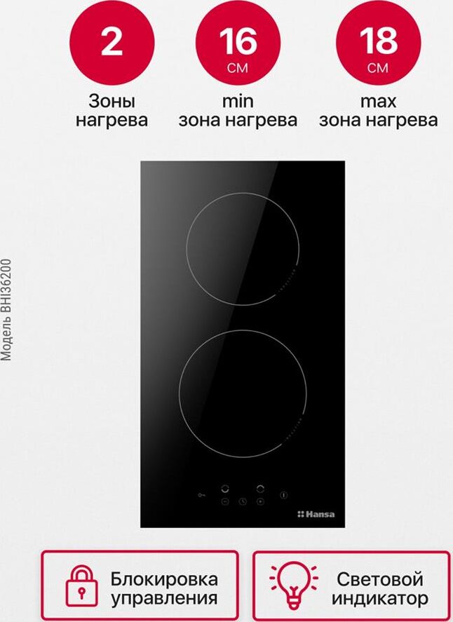 Панель варочная электрическая HANSA Индукционная варочная поверхность BHI36200, конфорок: 2 шт., стеклокерамика, независимая, черн