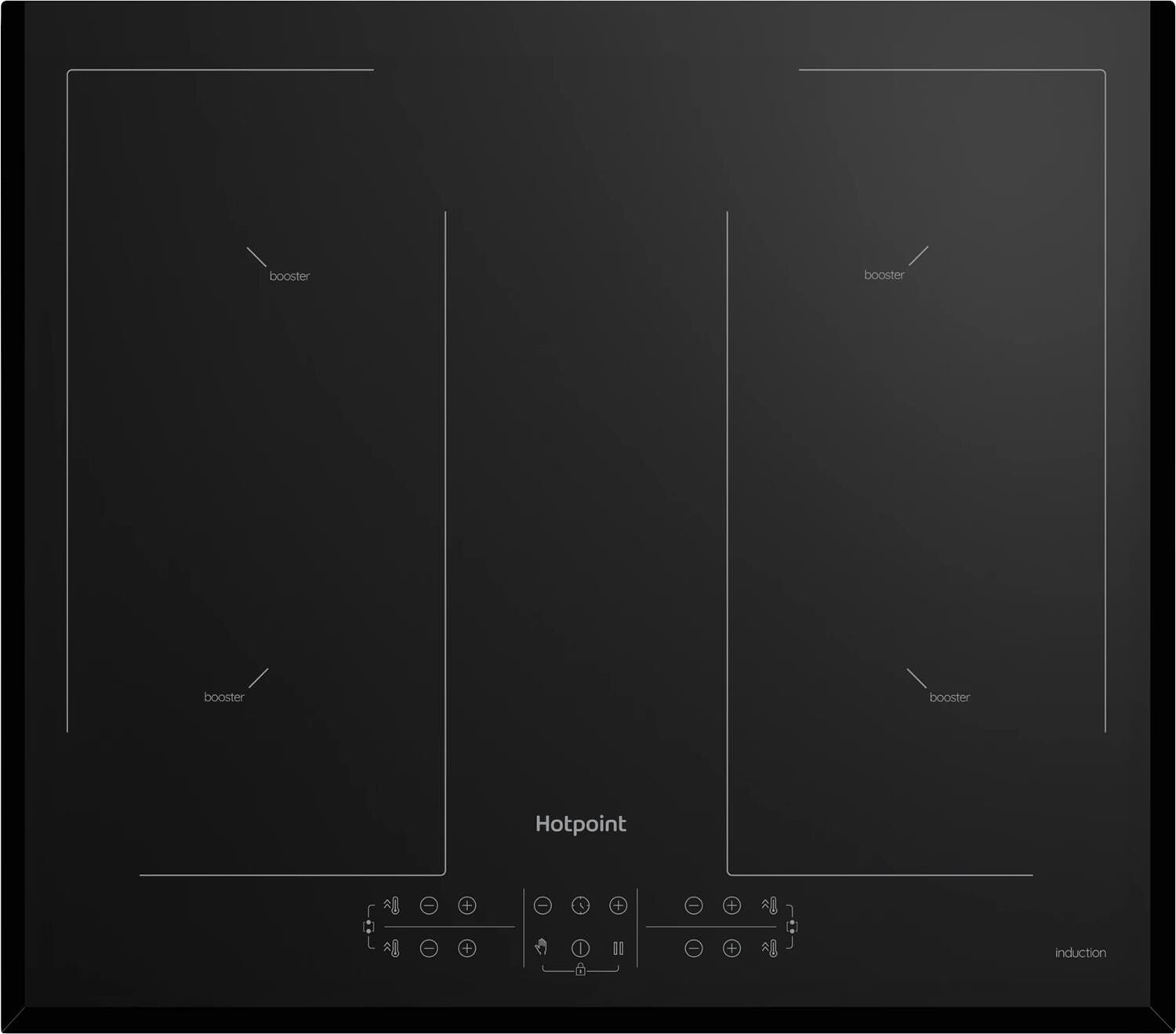 Индукционная варочная поверхность, 4 зоны нагрева, 2 зоны Bridge - возможность объединения соседних зон, функция быстрого нагрева Booster, 9-ступенчатая регулировка мощности, индивидуальное сенсорное управление для каждой зоны, таймер, функция блокировки