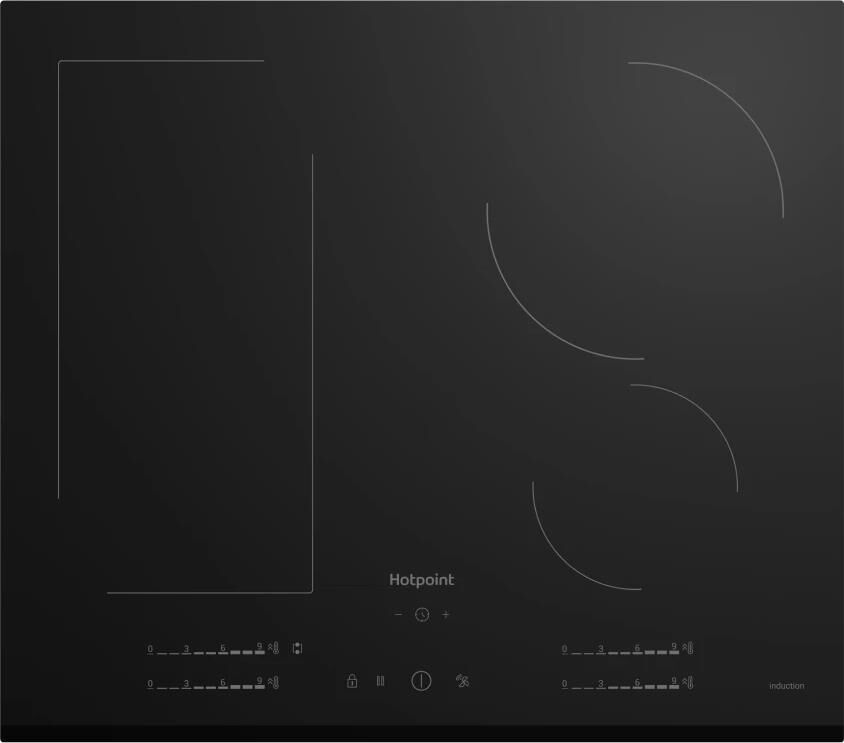 Индукционная варочная поверхность, 4 зоны нагрева, зона Bridge - возможность объединения двух зон, сенсорное управление слайдерного типа, функция быстрого нагрева Booster, 9-ступенчатая регулировка мощности, индивидуальное управление для каждой зоны, таймер, функция блокировки управления, индикация остаточного тепла, передний скошенный край; цвет: чёрный