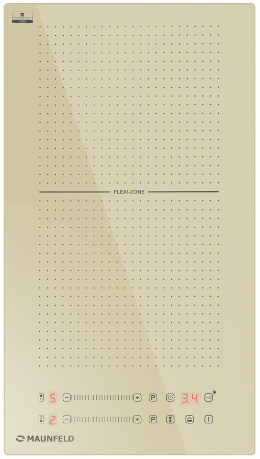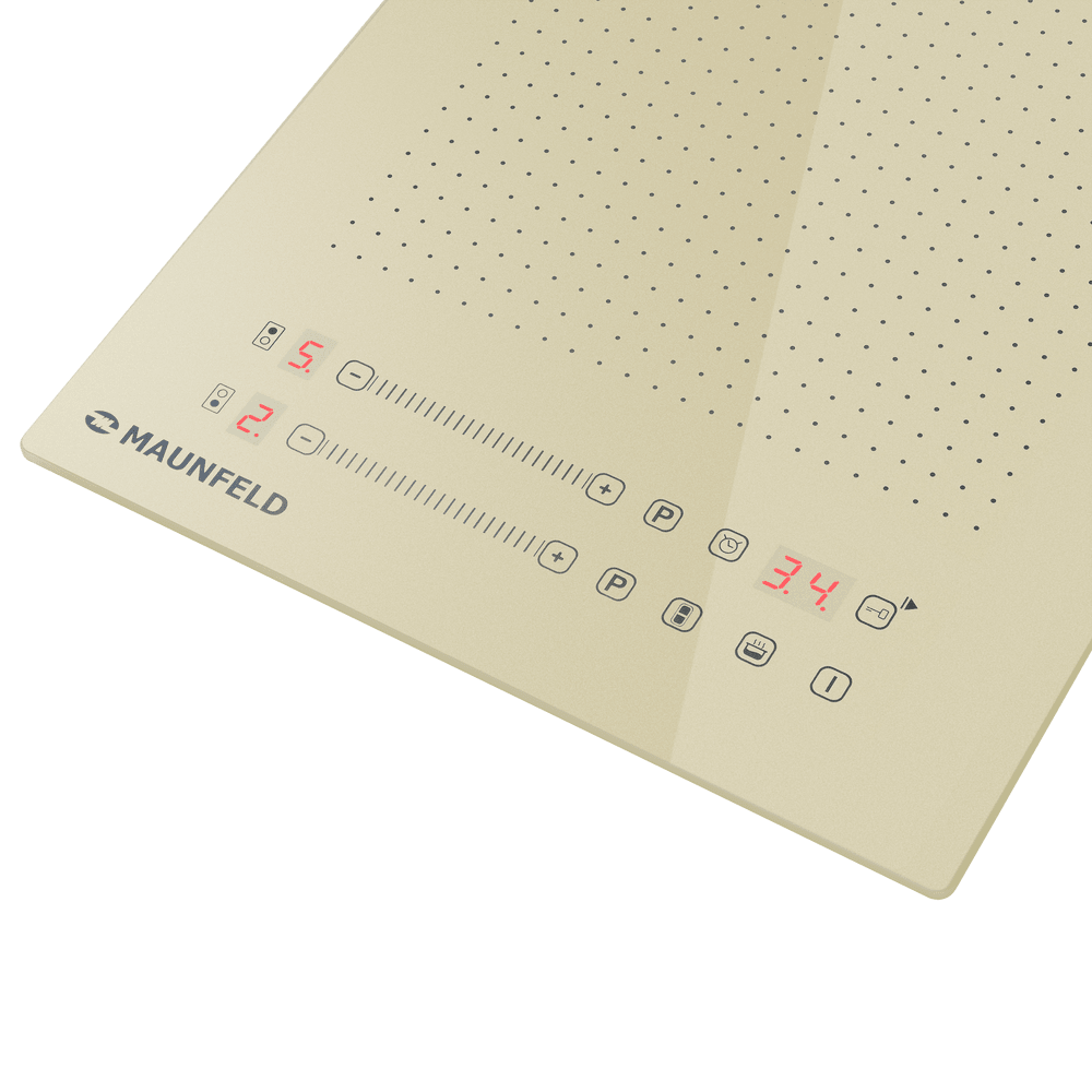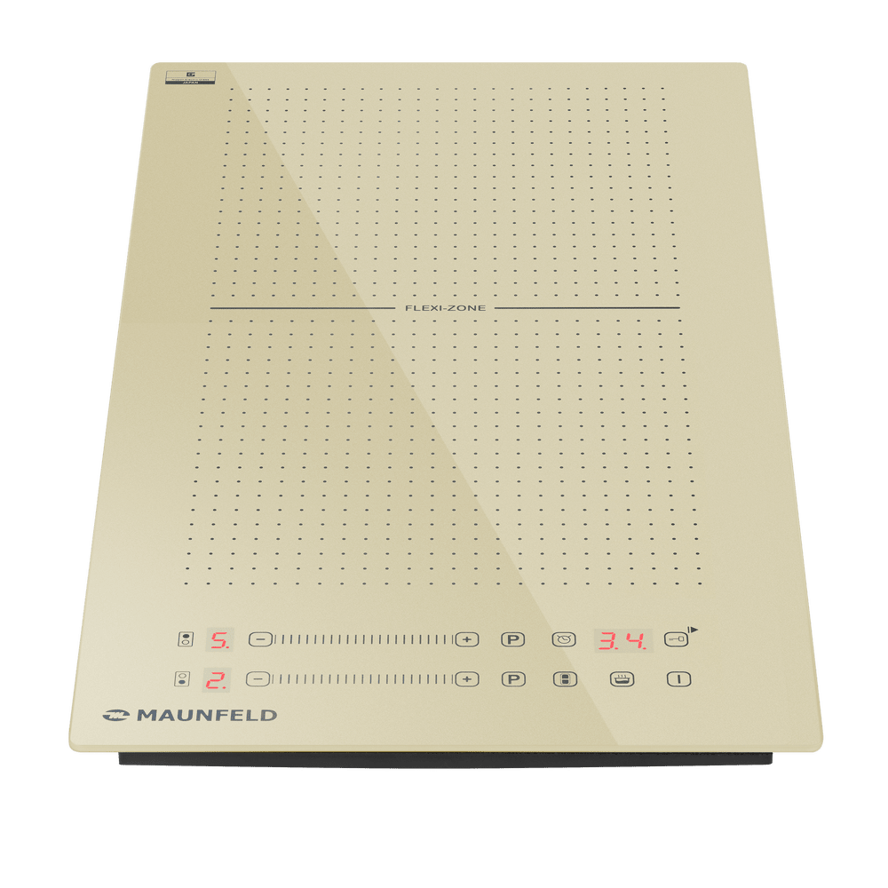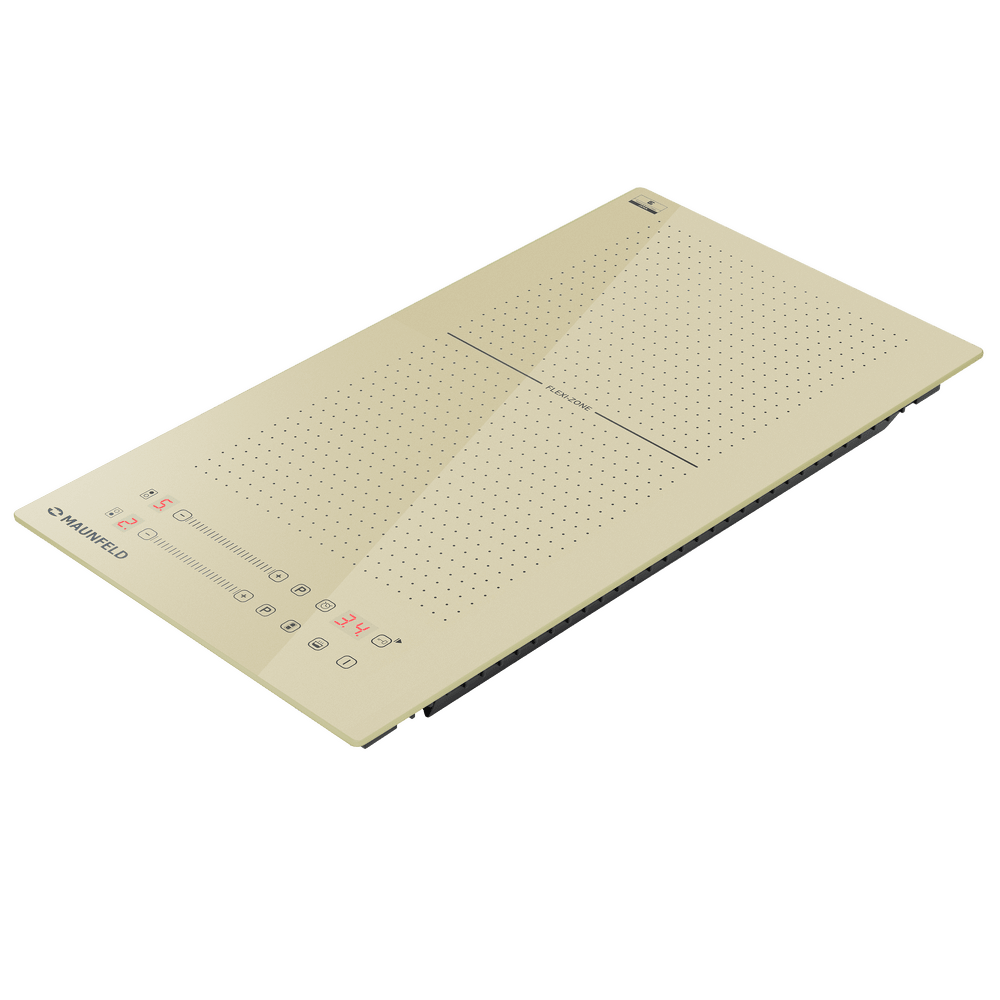 Индукционная варочная панель Maunfeld CVI292S2FBG — удобная и энергоэффективная модель, обладающая компактными размерами и элегантным современным дизайном. Главной особенностью ее внешнего вида является поверхность приятного бежевого оттенка, который ассоциируется с классическими интерьерами и домашним уютом. Конфорки обозначены схематично с помощью черных точек и имеют нестандартную квадратную форму. Это подчеркивает то, что на данной плите можно без проблем готовить в посуде любой формы и любого размера. Панель управления расположена на фронтальной части устройства и состоит из сенсорных кнопок, слайдеров для регуляции степени мощности и красных индикаторов. Особенностью конструкции индукционной варочной панели Маунфилд CVI292S2FBG является использование инновационной технологии FlexZone. С ее помощью можно объединить две зоны нагрева в одну большую. Детектор диаметра посуды точно определит, на какую площадь необходимо подавать тепло, что позволяет избежать теплопотерь и обеспечивает равномерный п