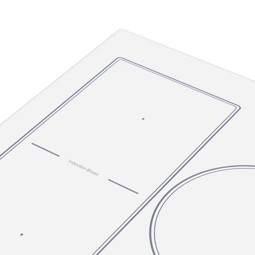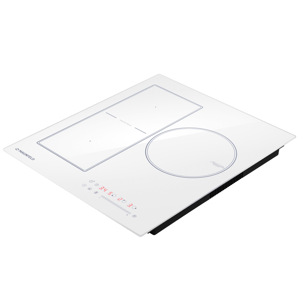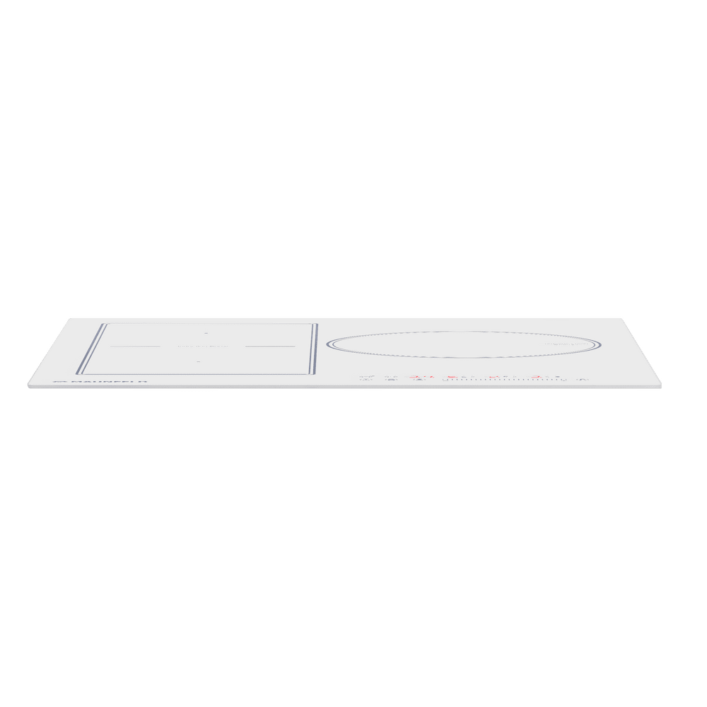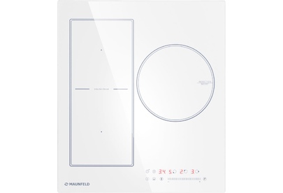 Индукционная варочная панель Maunfeld CVI453SBWH сочетает в себе необычный современный дизайн и продуманную функциональность. Поверхность плиты изготовлена из белой стеклокерамики, а все остальные детали нанесены на нее тонкими черными линиями. Панель управления расположена в правом нижнем углу и включает в себя как кнопки переключения режима, так и удобный слайдер для регулировки температуры. Индикация реализована в виде красной подсветки. Каждая зона нагрева очерчена двойной линией. Модель отличается компактностью и эргономичностью и станет отличным приобретением для любой кухни. Особая конструкция индукционной варочной панели Маунфилд CVI453SBWH делает возможным приготовление еды в посуде разного размера и диаметра. На левой половине модели расположены две зоны нагрева, которые могут быть объединены в одну благодаря использованию технологии FlexZone Справа находится большая конфорка, подходящая для крупной посуды. Для быстрого достижения максимальной мощности можно активировать функцию Booster