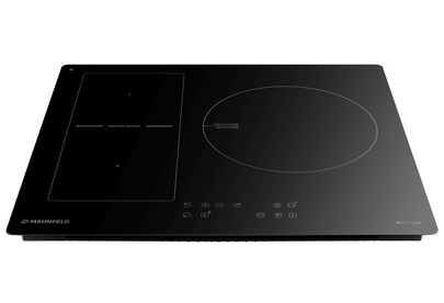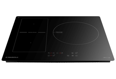 Индукционная варочная панель Maunfeld CVI593BBK Inverter – это сочетание высоких технологий, стильного дизайна и функциональности. Поверхность из стеклокерамики, коллекция модерн и черный цвет делают эту модель прекрасным дополнением для любой современной кухни. Габариты варочной панели составляют 59 см в ширину, 52 см в глубину и 5.8 см в высоту, что позволяет легко встроить ее в любую нишу размером 56.5 х 49.5 см. Управление электронное, с сенсорными элементами и слайдером для удобства использования. Всего 9 ступеней мощности, индикация ступени нагрева и наличия посуды, вывод сообщения об ошибке и технология непрерывного нагрева делают процесс приготовления пищи максимально простым и комфортным. Уникальность этой модели заключается в инверторной технологии, функции Bridge, возможности размораживания и подогрева, а также наличии таймера для каждой из трех индукционных конфорок. Диаметр конфорок варьируется от 160 до 280 мм, а их мощность от 1200 до 3000 Вт. Благодаря функции детектора диаметра п