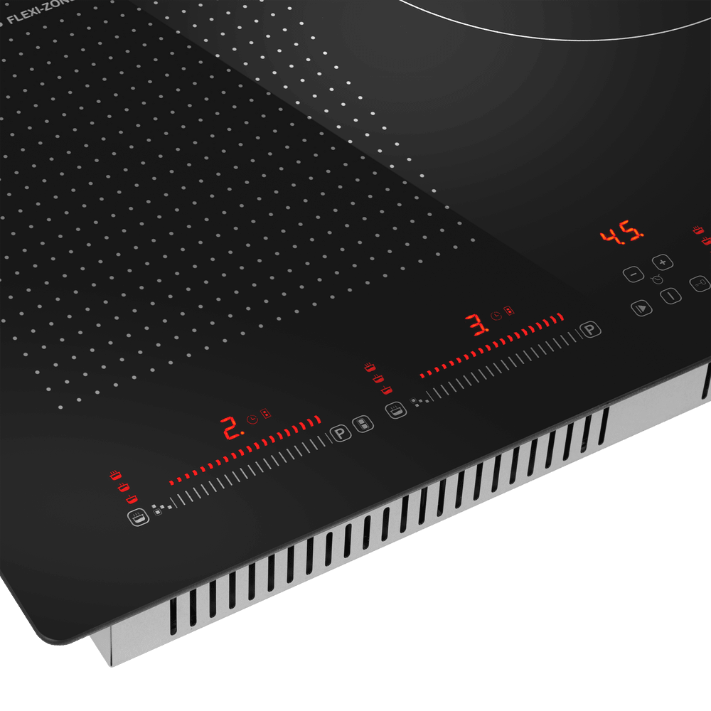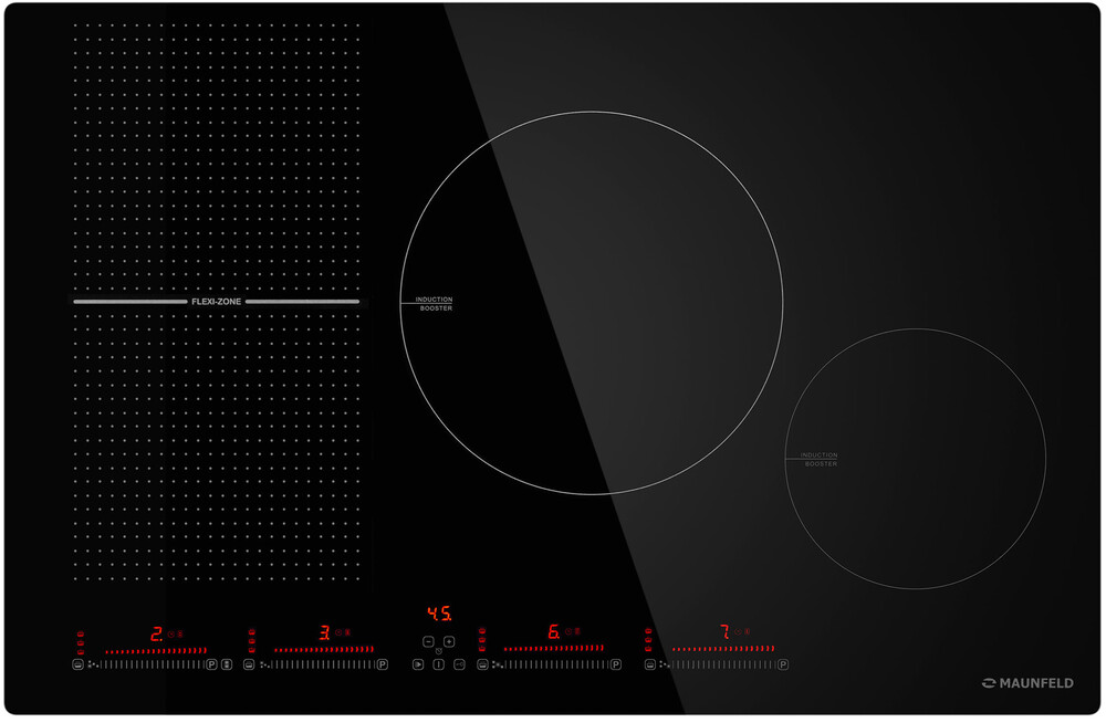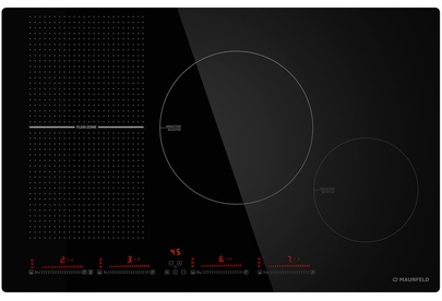 Индукционная варочная панель Maunfeld CVI804SFBK — мощная и технологичная модель, выполненная в современном дизайне. Конструкция максимально продумана и эргономична, благодаря чему пользоваться устройством комфортно и приятно. Поверхность изготовлена из прочной и стойкой к перепадам черной стеклокерамики. Сенсорная панель управления встроенная, располагается в левой нижней части плиты. Каждая конфорка имеет 9 степеней мощности, чтобы отрегулировать температуру, достаточно провести пальцем по слайдеру. Конфорки схематично обозначены белым цветом, в этом же оттенке сделаны элементы управления. Конструкция индукционной варочной панели Маунфилд CVI804SFBK обеспечивает множеством возможностей для приготовления пищи. В левой части расположены две конфорки, которые можно объединить в одну благодаря инновационной технологии FlexZone. Это полезно при использовании нестандартной посуды, например, утятницы или гриля. По центру установлена конфорка с большим диаметром 280 мм, она также является самой мощной