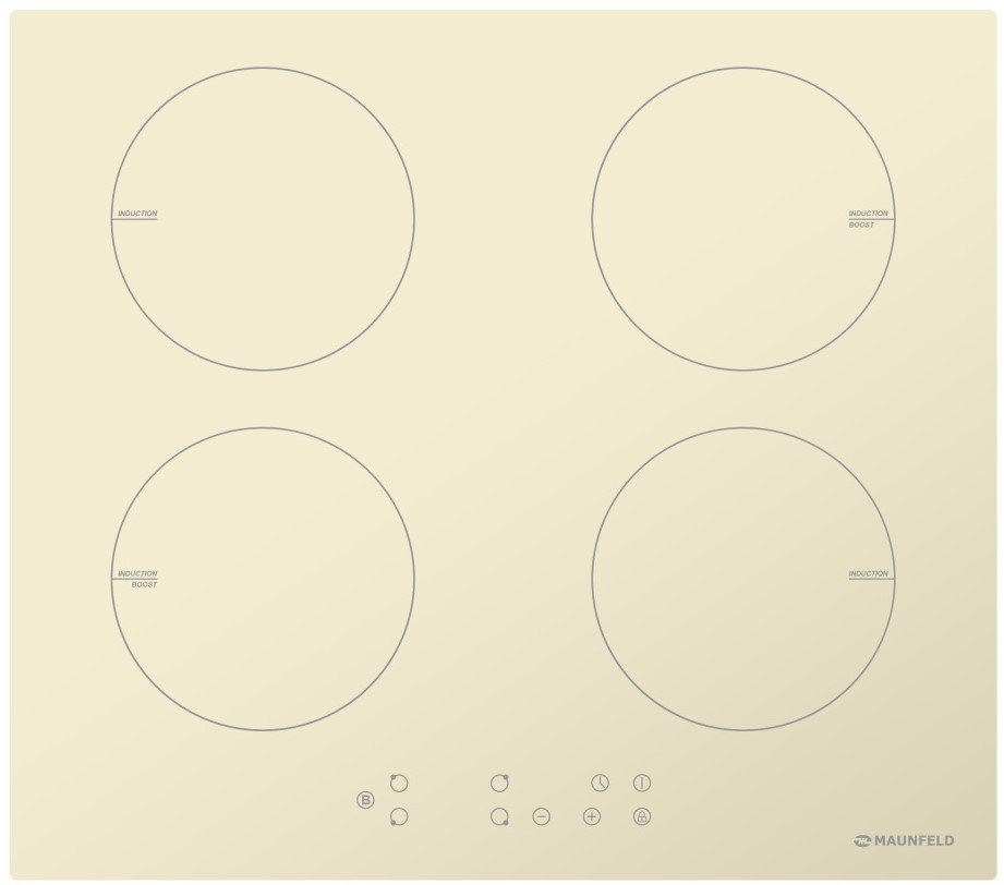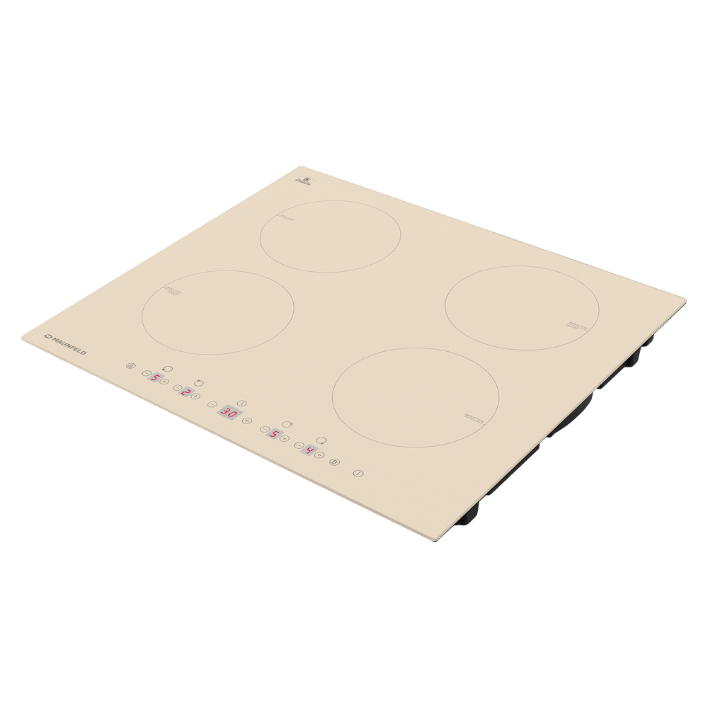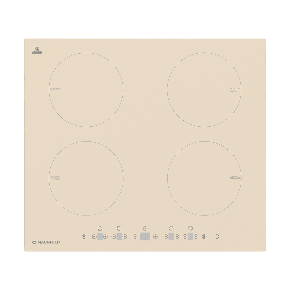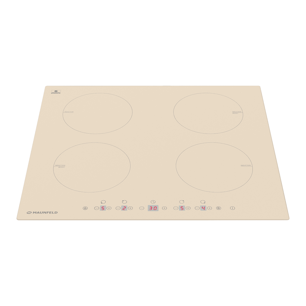 Варочная панель Maunfeld EVI.594-BG представлена в бежевом цвете. Модель из коллекции «Модерн» относится к индукционному типу. Ниша для встраивания имеет следующие габариты 56×49 см. Поверхность выполнена из стеклокерамики Nippon Electric Glass высокой прочности, которой не страшны механические воздействия и влияние высокой температуры. Четыре конфорки способствуют одновременному приготовлению нескольких блюд. Две зоны нагрева оснащены режимом Booster, то есть они получают максимальную мощность, что сокращает время приготовления в несколько раз. Электронное управление, простое и интуитивно понятное, осуществляется по средствам сенсорных слайдерных переключателей. Встроенный таймер можно настроить на отключение как прибора полностью, так и каждой отдельной зоны. Гарантия от производителя составляет 12 месяцев. Устройство имеет девять режимов нагрева со световой индикацией каждой ступени. Детектор диаметра посуды экономит расход электроэнергии за счет точной точечной подачи тепла. За безопасную эксплу