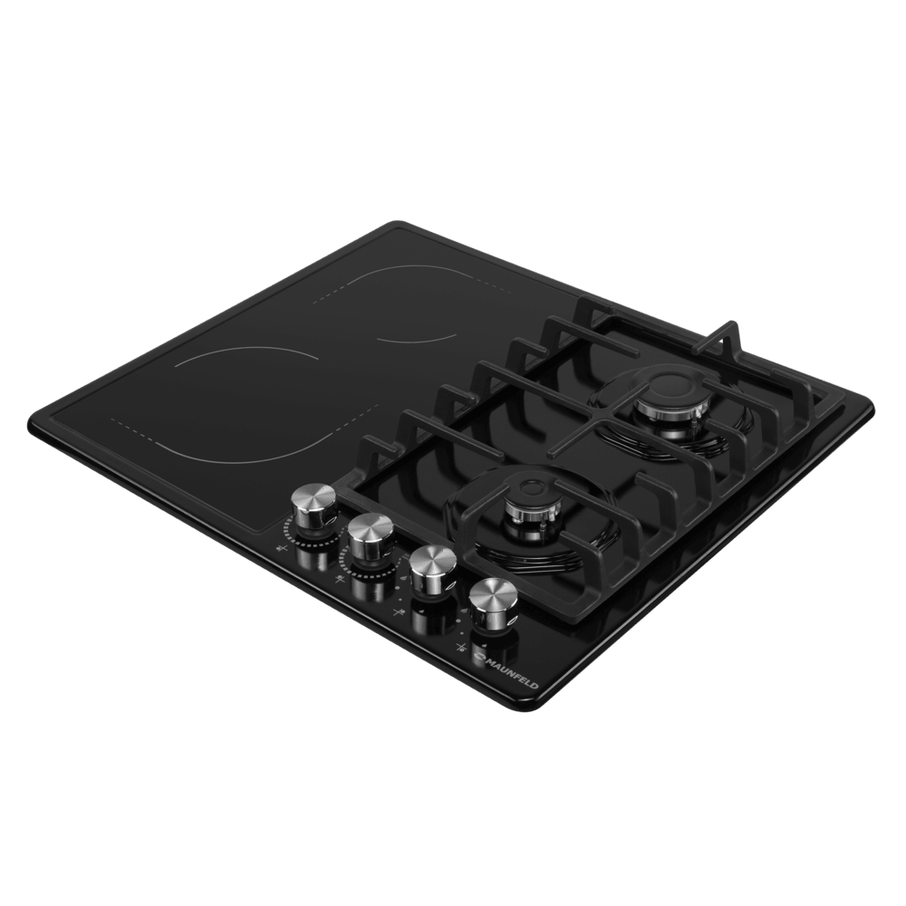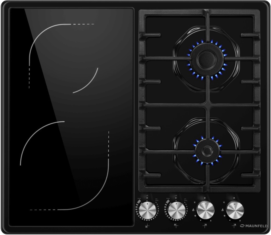 Maunfeld EEHE.642VC.3CB/KG — комбинированная модель с поверхностью из стекла, выполненная в черном цвете. Устройство оснащено двумя газовыми и двумя электрическими конфорками, что делает прибор универсальным в использовании. Благодаря наличию электроподжига зажигание пламени происходит автоматически, для этого просто нужно нажать и повернуть регулятор против часовой стрелки до требуемого положения. Лампочка-индикатор будет светится при любой включенной конфорке. Ключевые преимущества: электроподжиг панель из закаленного стекла газ-контроль
