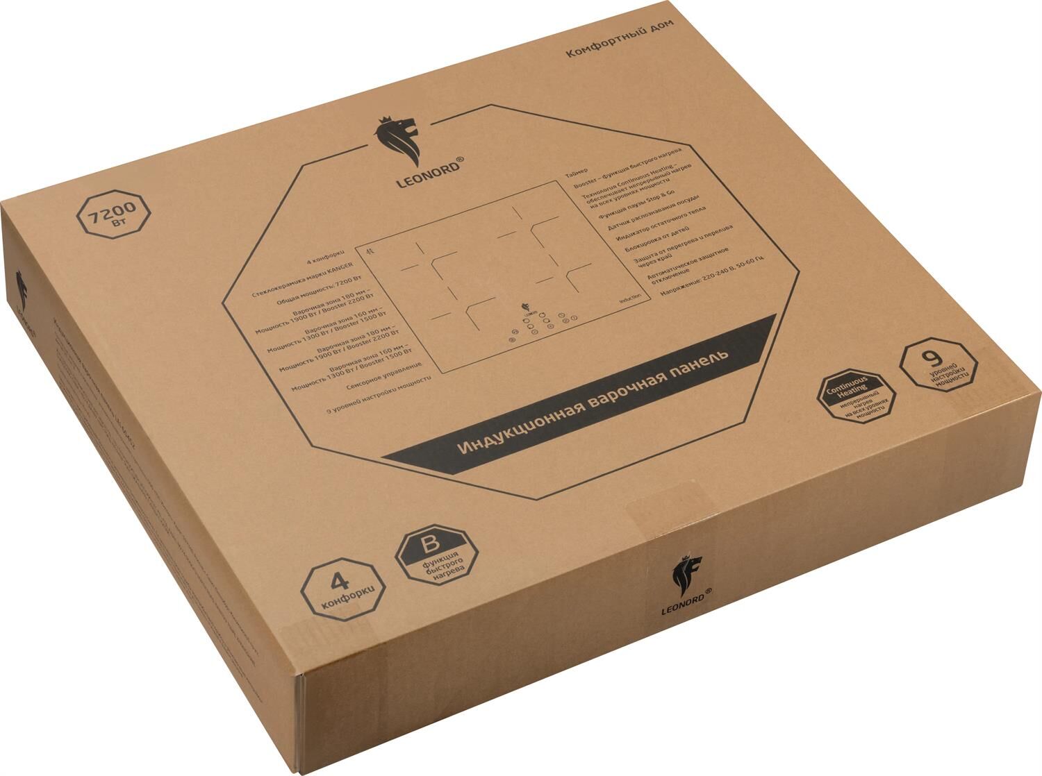 4 конфорки Стеклокерамика марки KANGER Общая мощность: 7200 Вт Варочная зона 180 мм - Мощность 1900 Вт /Booster 2200 Вт Варочная зона 160 мм - Мощность 1300 Вт /Booster 1500 Вт Варочная зона 180 мм - Мощность 1900 Вт /Booster 2200 Вт Варочная зона 160 мм - Мощность 1300 Вт /Booster 1500 Вт Сенсорное управление 9 уровней настройки мощности Booster - функция быстрого нагрева Таймер Технология Continuous Heating - обеспечивает непрерывный нагрев на всех уровнях мощности Функция паузы Stop & Go Индикатор остаточного тепла Блокировка от детей Защита от перегрева и перелива через край Автоматическое защитное отключение Размер изделия: 590*520*56 мм Напряжение: 220-240 В, 50-60 Гц Гарантия 2 года